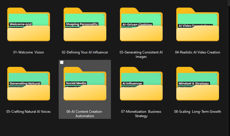 - Module 8: Scaling & Long-Term Growth: Build a sustainable and profitable AI influencer brand.