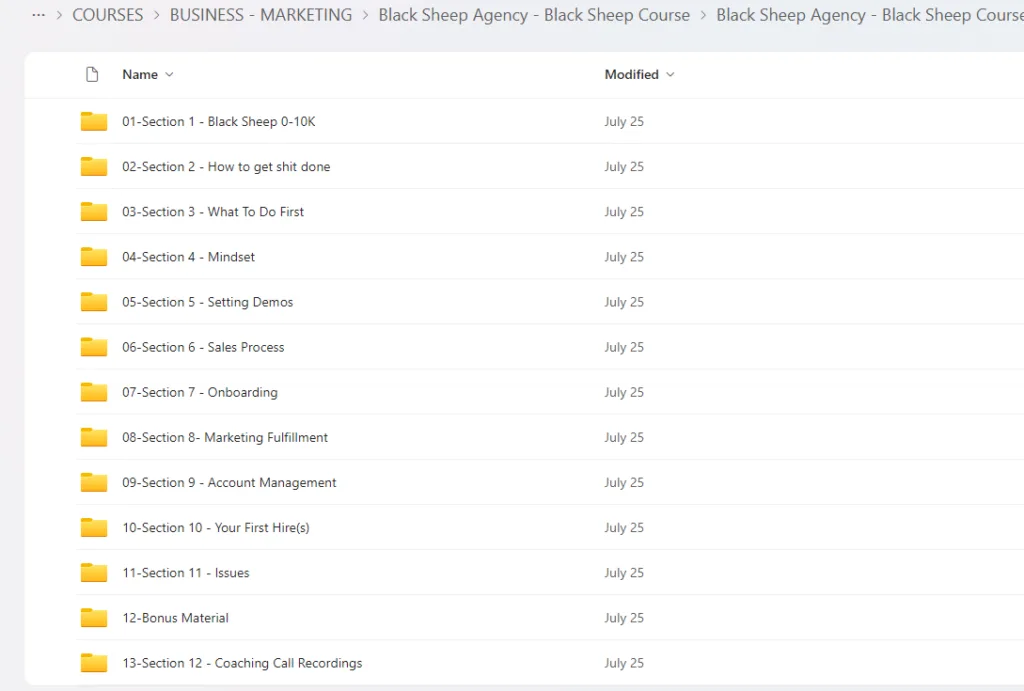 The Black Sheep Agency Course by Hayden Ralph is structured into comprehensive modules designed to take you from your current state to exceeding $50K+ per month. Each module includes video lessons, downloadable resources, and actionable assignments.