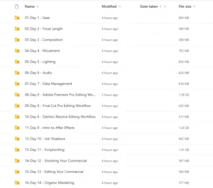 - 14 Day Smartphone Filmmaker Course: Learn to maximize your smartphone camera’s potential, edit videos on the go, and create professional-looking content.