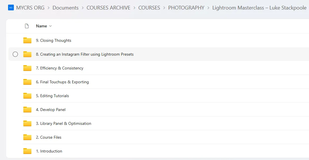 The Lightroom Masterclass by Luke Stackpoole is carefully structured to provide a progressive learning experience. Each module builds upon the previous one, ensuring you grasp the fundamental concepts before moving on to more advanced techniques.