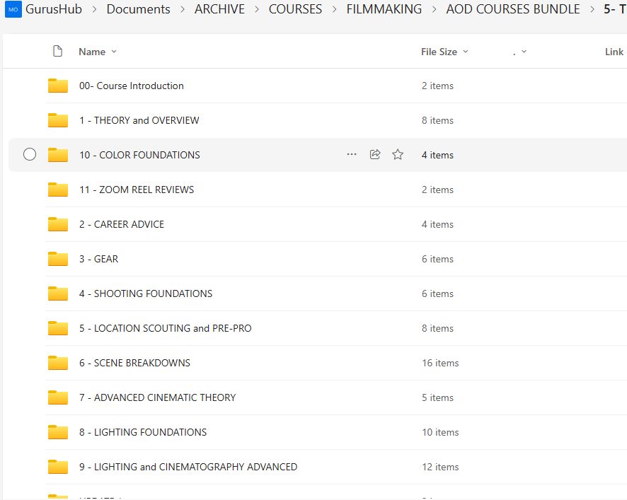 - Module 3: Gear: 5 Lessons exploring essential filmmaking equipment.