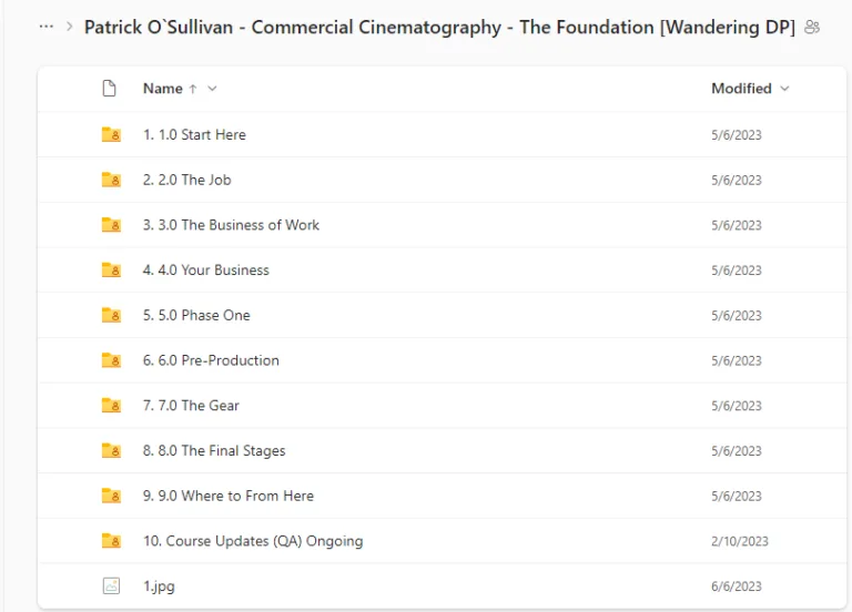 Wandering DP Commercial Cinematography The Foundation is structured into eight comprehensive modules, covering every stage of the commercial cinematography process: